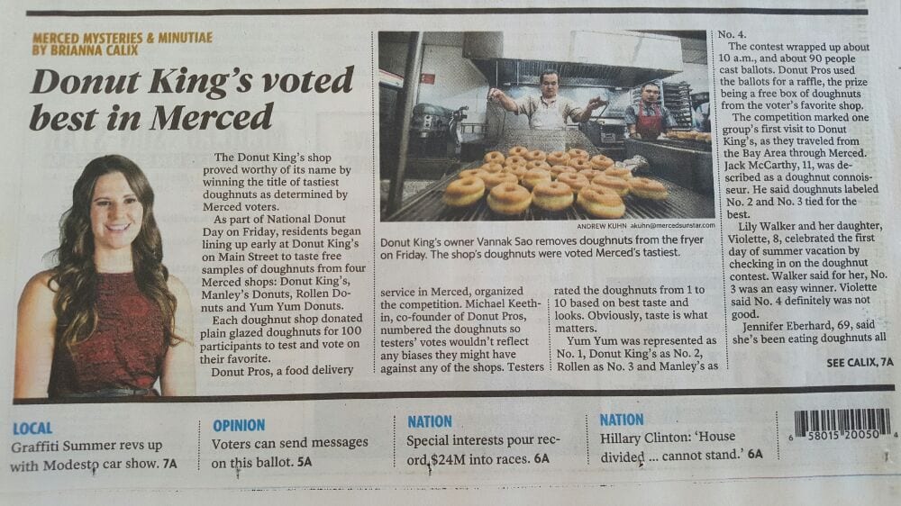 Introducing Donut King's, a hidden gem in Merced offering a delightful fusion of donuts, bubble tea, and Vietnamese-style sandwiches. Known for their perfectly seasoned BBQ pork, chicken, or tofu sandwiches, topped with crunchy pickled veggies and a dollop of mayo, Donut King's sandwiches are a must-try for a satisfying lunch or brunch. Customers rave about the mango milk tea and unique boba drinks, highlighting the delicious offerings beyond just donuts. The cozy atmosphere and friendly staff add to the charm of this mom-and-pop shop, making it a favorite spot for locals. Donut King's is a perfect stop for a sweet treat or a flavorful Vietnamese Banh Mi sandwich, showcasing a diverse menu with something for everyone.